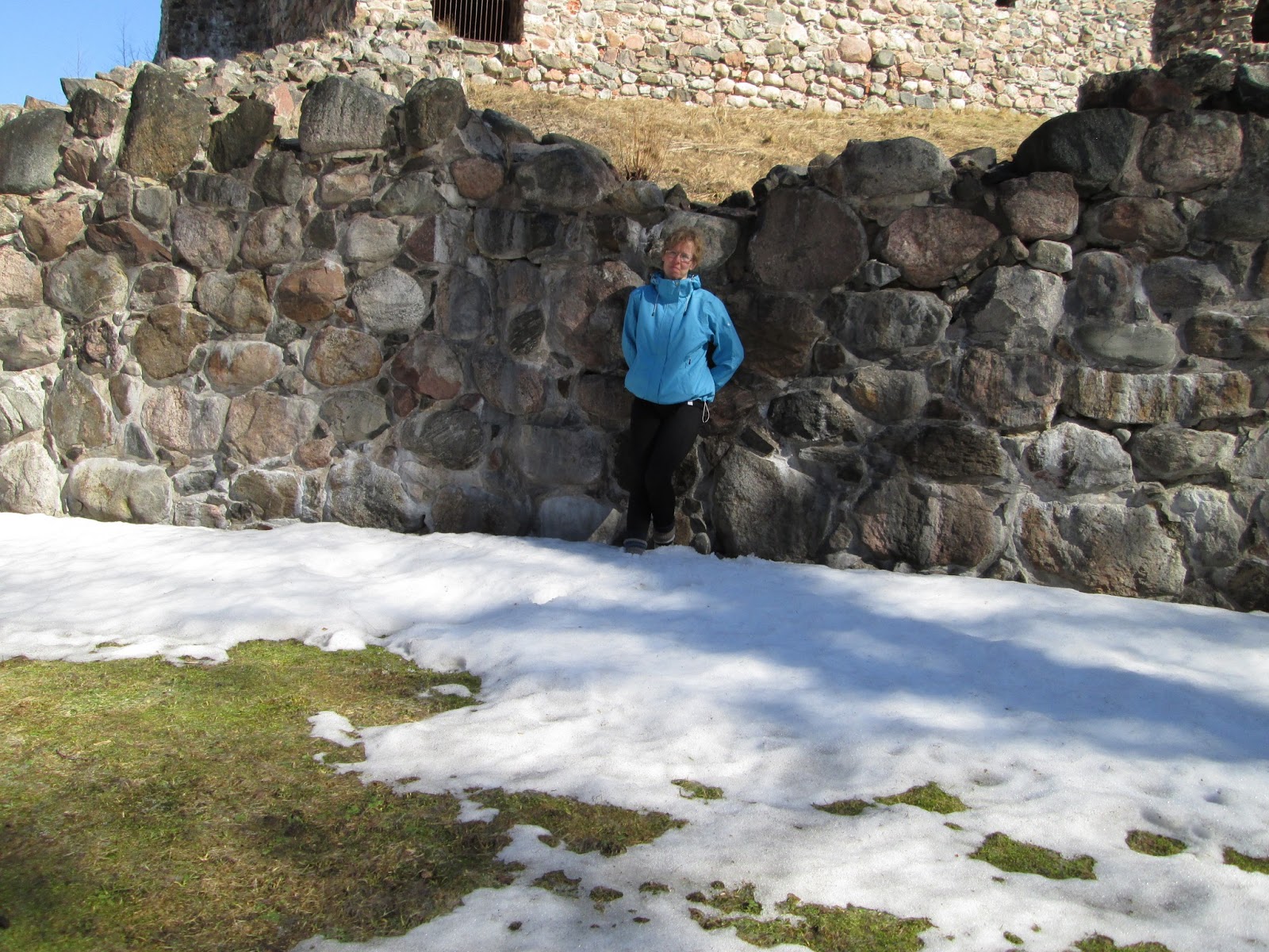 Ja kun kiipesin aivan linnoituksen kylkeen, niin yllätin kevään ensimmäisen kyyn ottamassa aurinkoa kivetyksellä.